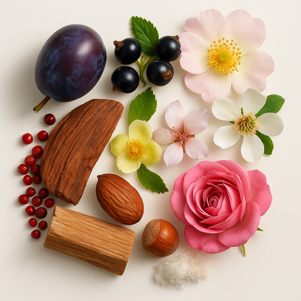 Note de cœur: Fleur d’amandier, Rose, Muguet, Poivre Rouge.