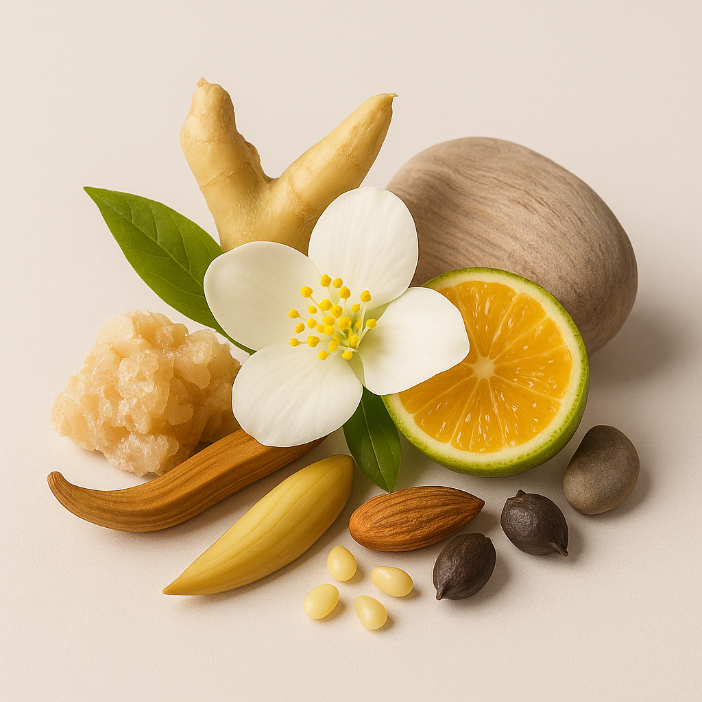 Note de tête: Jasmin d’eau, Mandarine Verte, Fleur de Gingembre.
