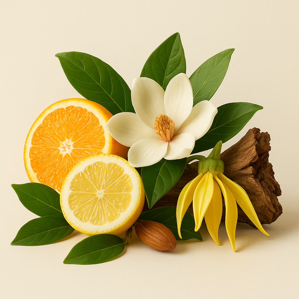 Note de fond: Ylang-Ylang, Notes Boisées.