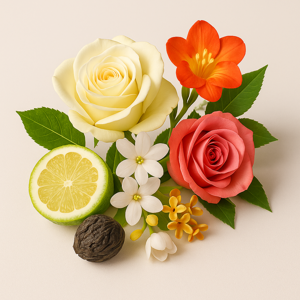 Note de cœur: Orchidée, Jasmin, Rose, Freesia, Fleur d’oranger Africaine.