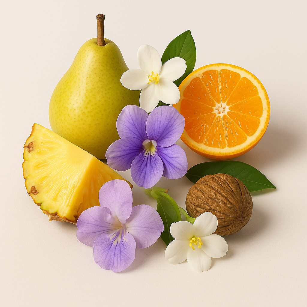Notes de tête: Poire, Bergamote, Ananas, Mandarine.