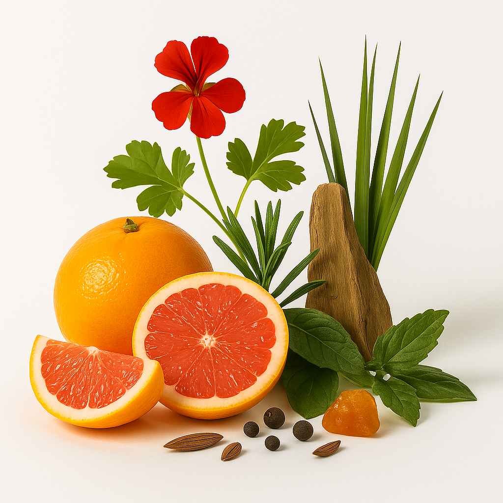 Note de cœur: Feuilles de Pélargonium, Poivre.