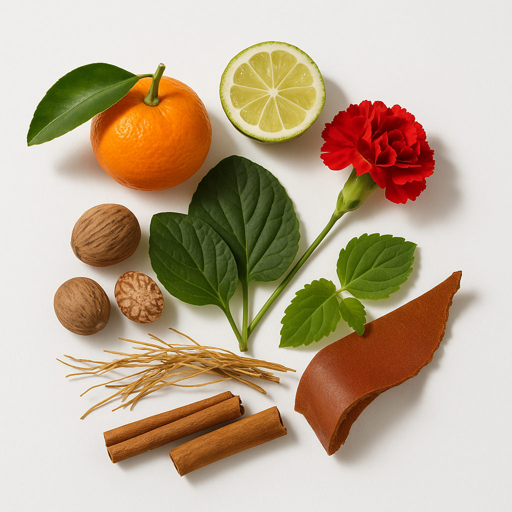 Note de cœur: Feuilles de Violette, Noix de Muscade, Œillet.