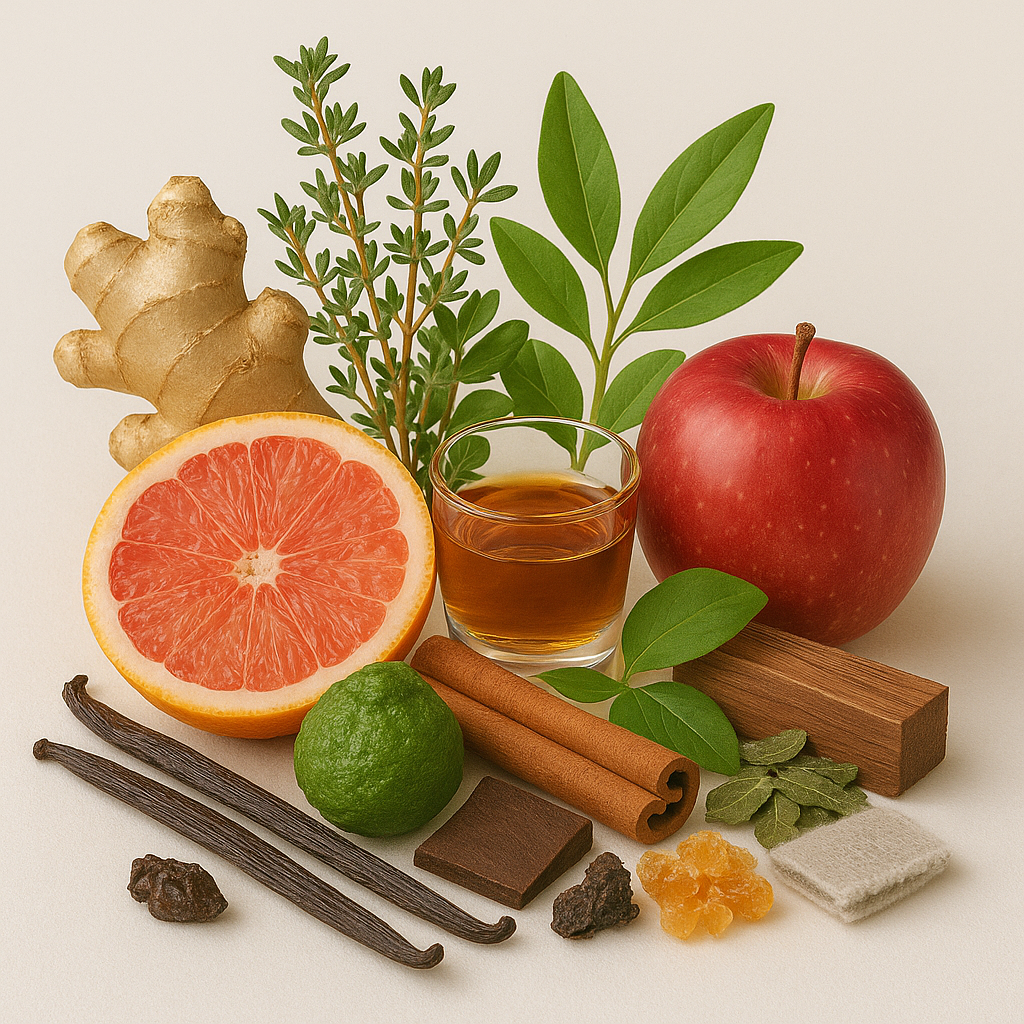 Note de tête: Gingembre, Thym, Pamplemousse, Bergamote, Accords Verts.