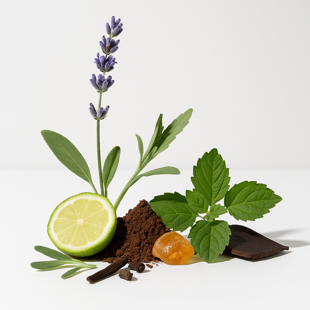 Note de fond: Vétiver de Haïti, Patchouli d’Indonésie, Cuir.